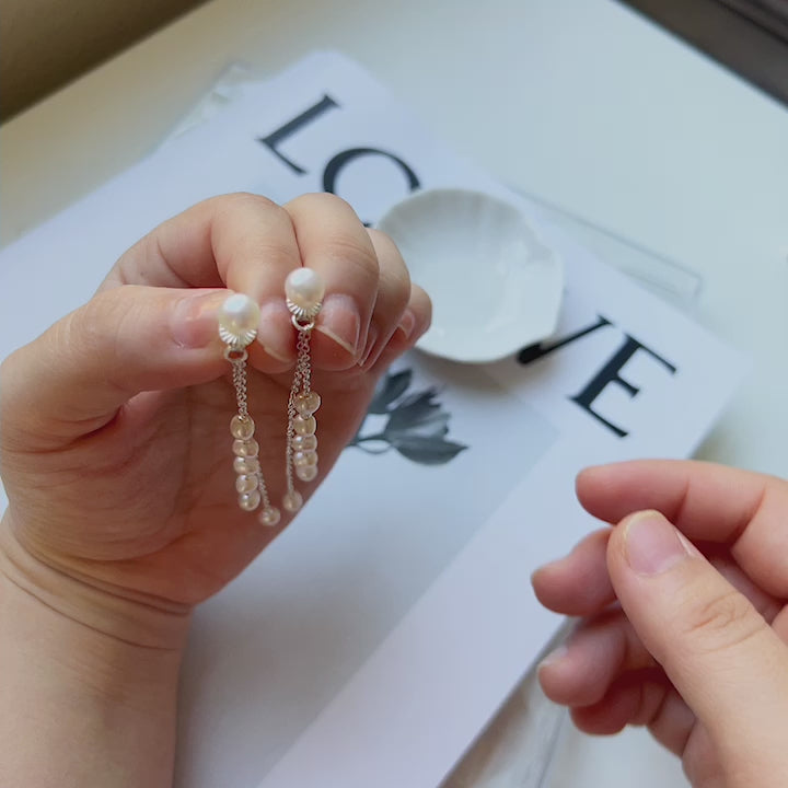 S925 Fresh Water Pearl Earrings, Sterling Silver Chain Long Drop Tassel Wedding Gift