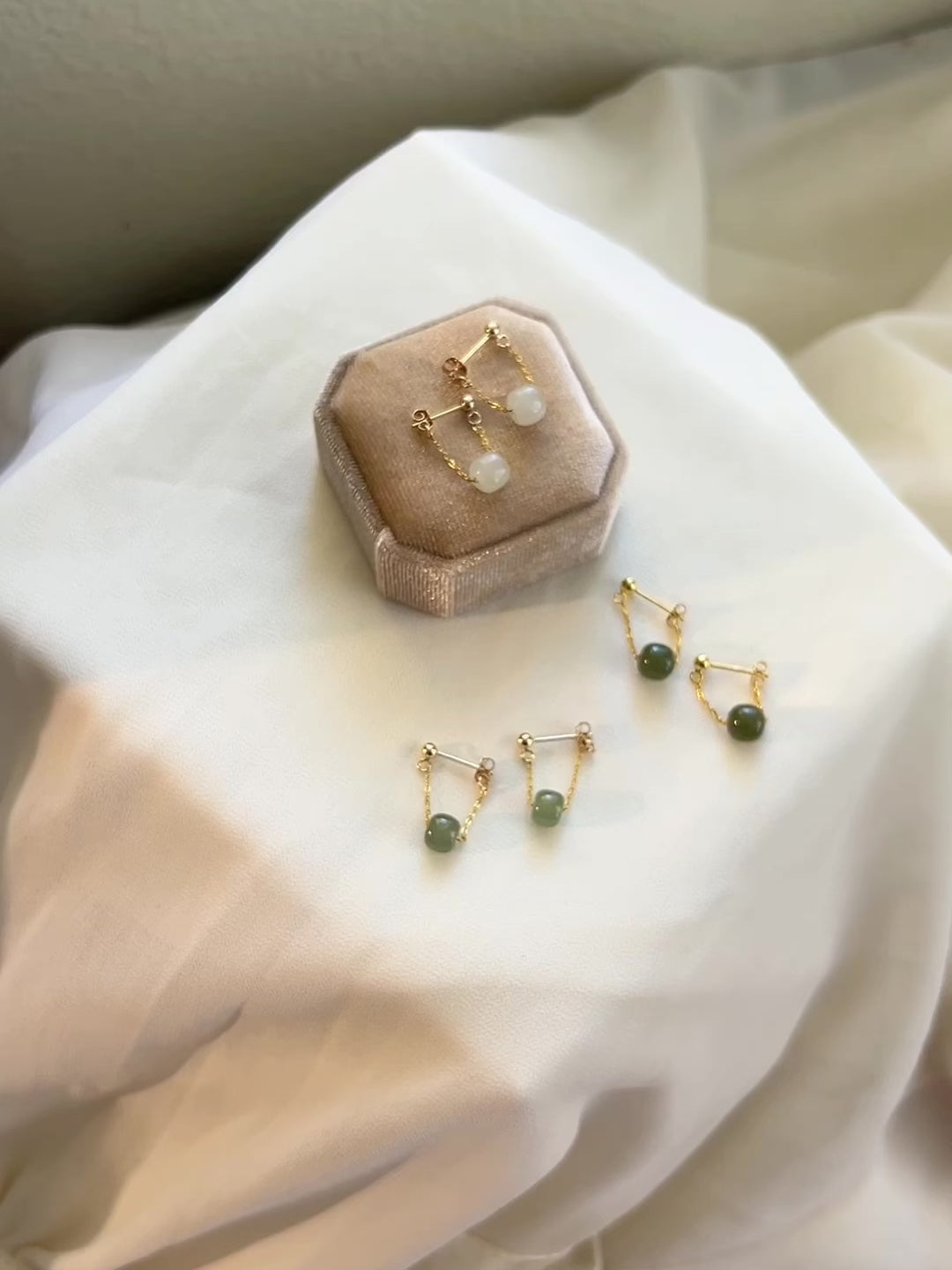 Natural Hetian Jade Drop Earrings with Gold Filled Chain