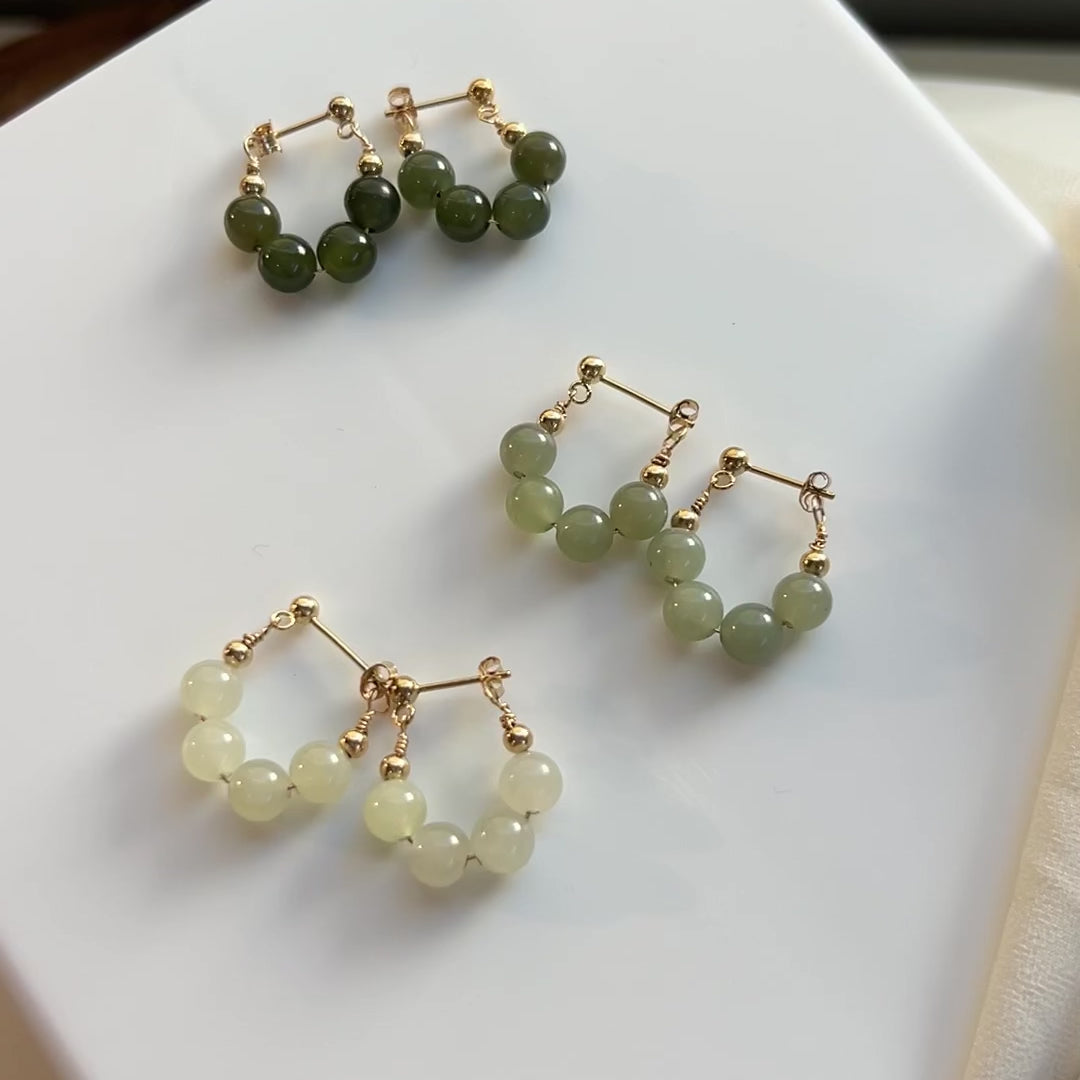 Hetian Jade Beaded Hood Earring, Natural Nephrite Earrings 14K Gold Filled